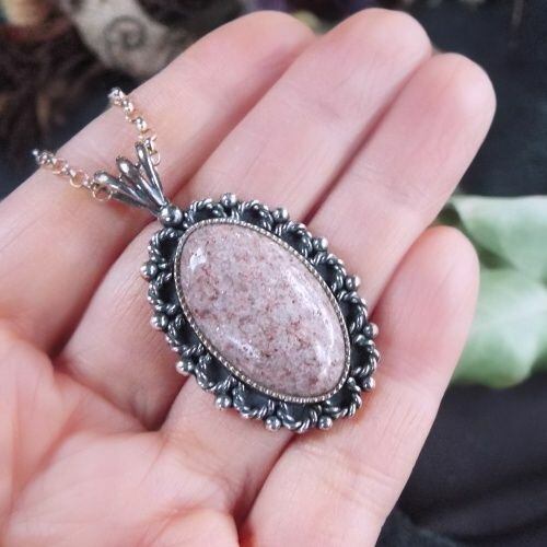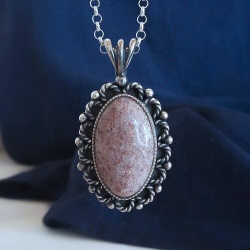 SOLD OUT ピンクアベンチュリン・シルバーペンダント・クラシカルフラワーパターン