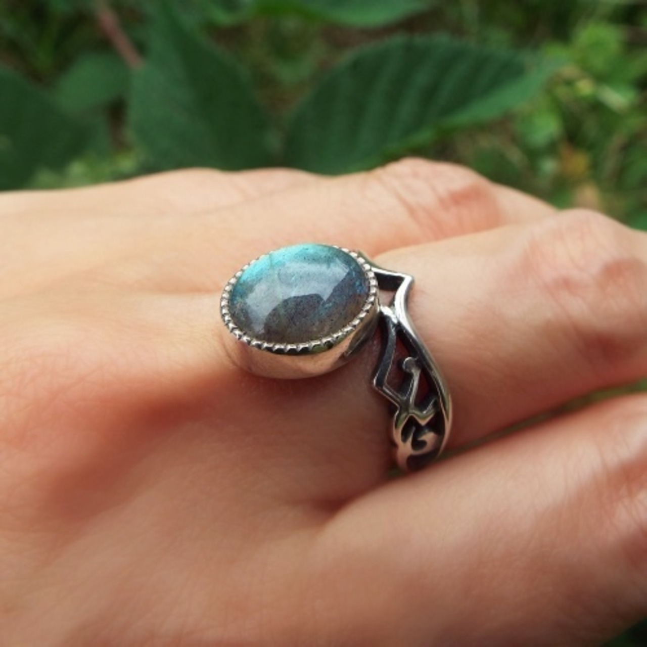 遊色が美しい天然石・ラブラドライトを使ったシルバーリングです。